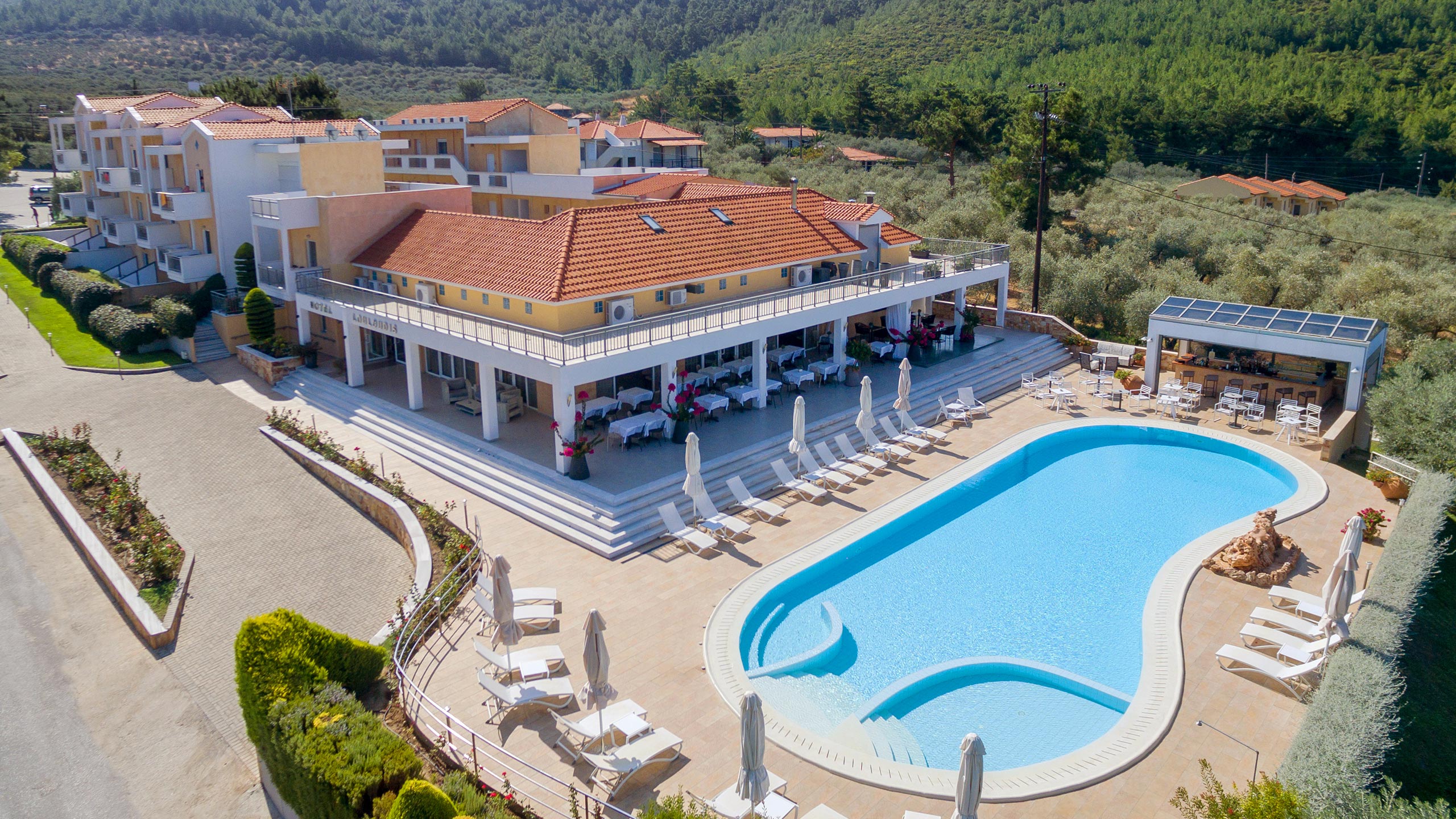 The swimming pool at Louloudis Boutique Hotel offers a refreshing escape in a calm and relaxing setting. Surrounded by a peaceful environment, it is the perfect place to enjoy the warm Greek sun, take a refreshing swim, or simply unwind on a comfortable sun lounger.