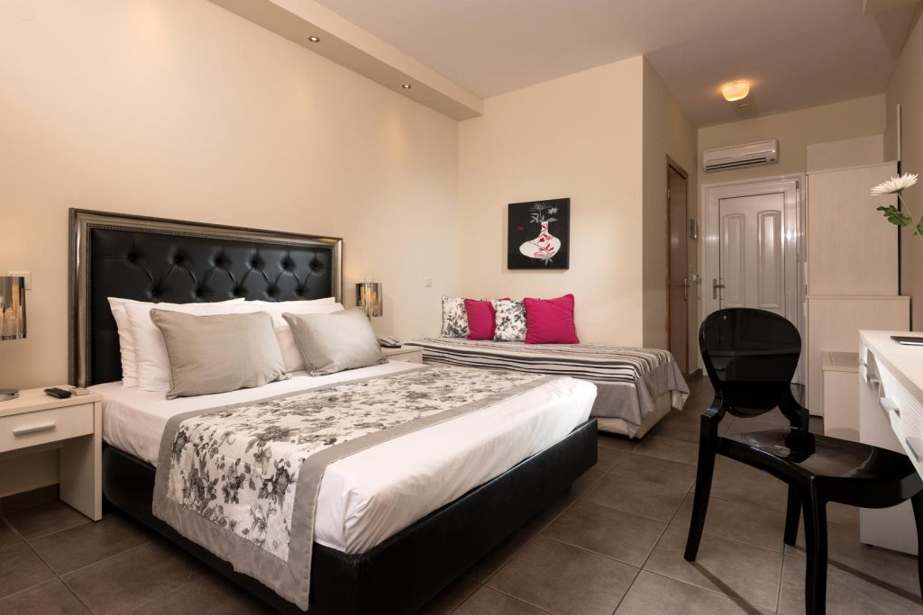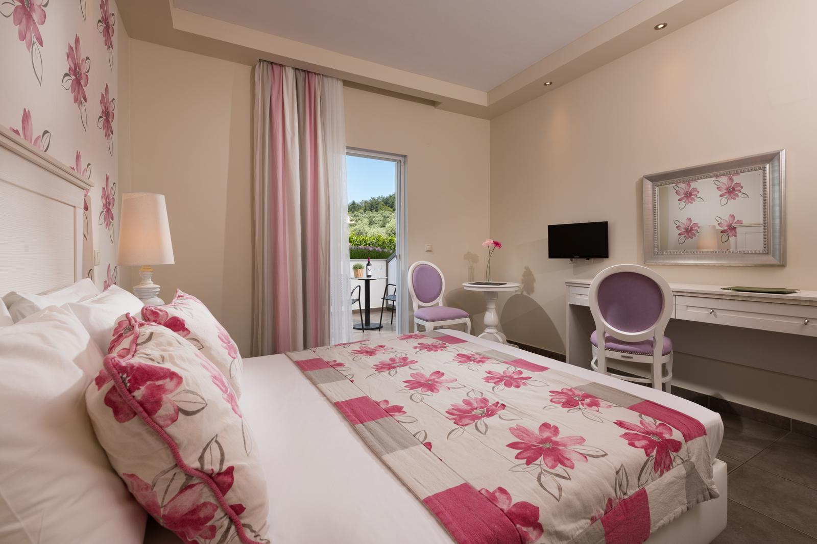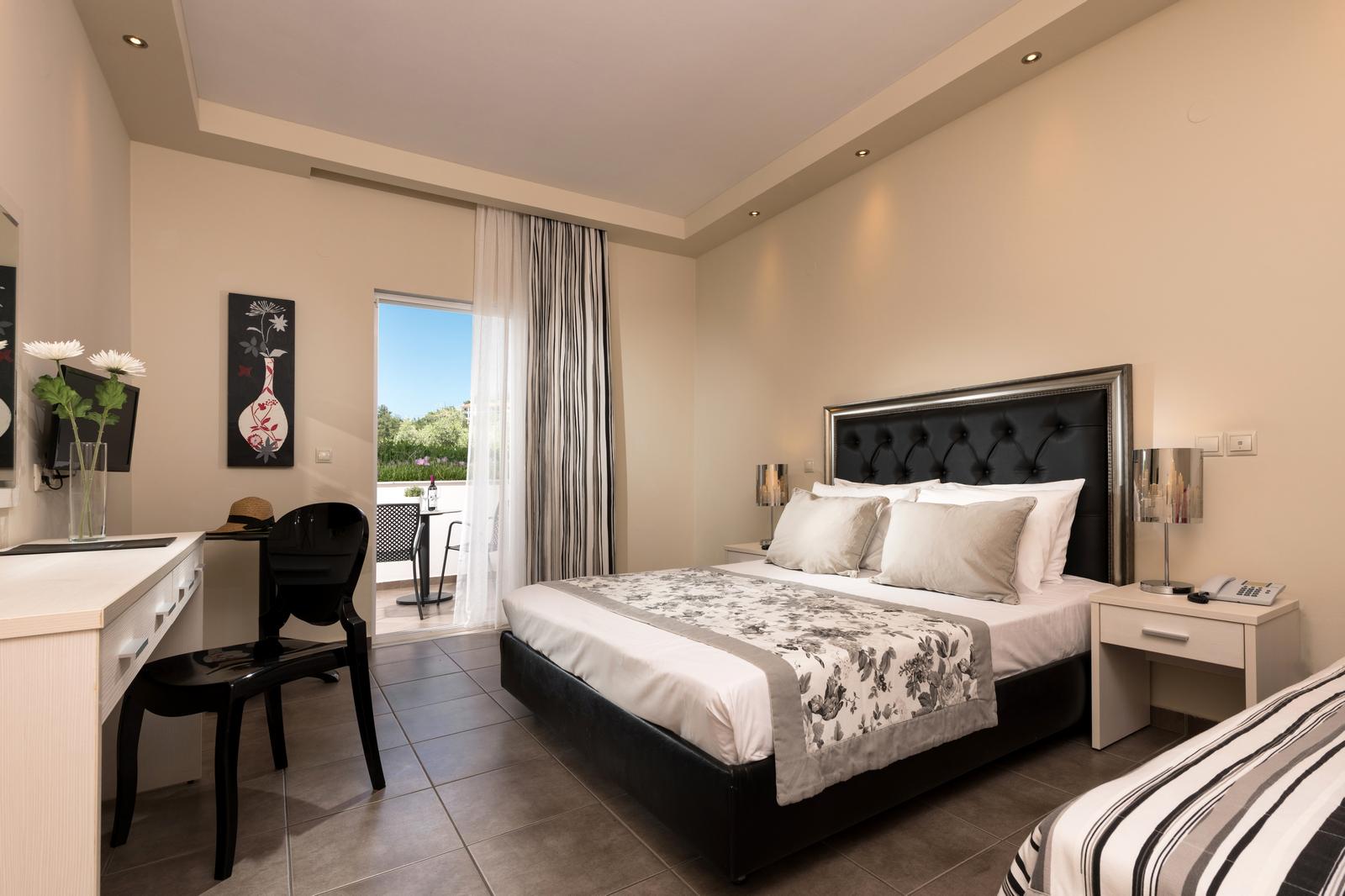 Comfortable room with modern design, private balcony, and all essential amenities for a relaxing stay at Louloudis Boutique Hotel.
